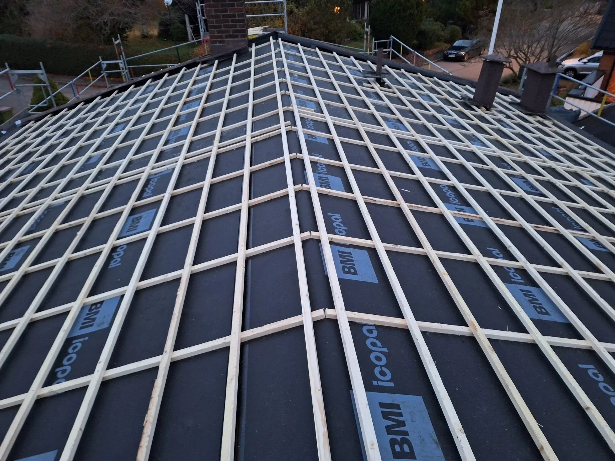 Vi hanterar hela processen, oavsett om du bygger nytt, byter ett gammalt tak eller behöver reparera enstaka pannor. Från besiktning och offert till färdigt tak.